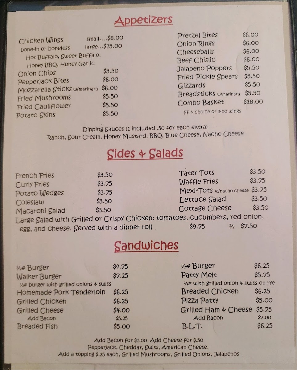 Walker's offers a straightforward and inviting menu that fits perfectly with its welcoming bar & grill setting. The selection centers around classic comfort food and casual dining favorites, making it an easy choice for relaxed lunches, hearty dinners, or casual evenings out.