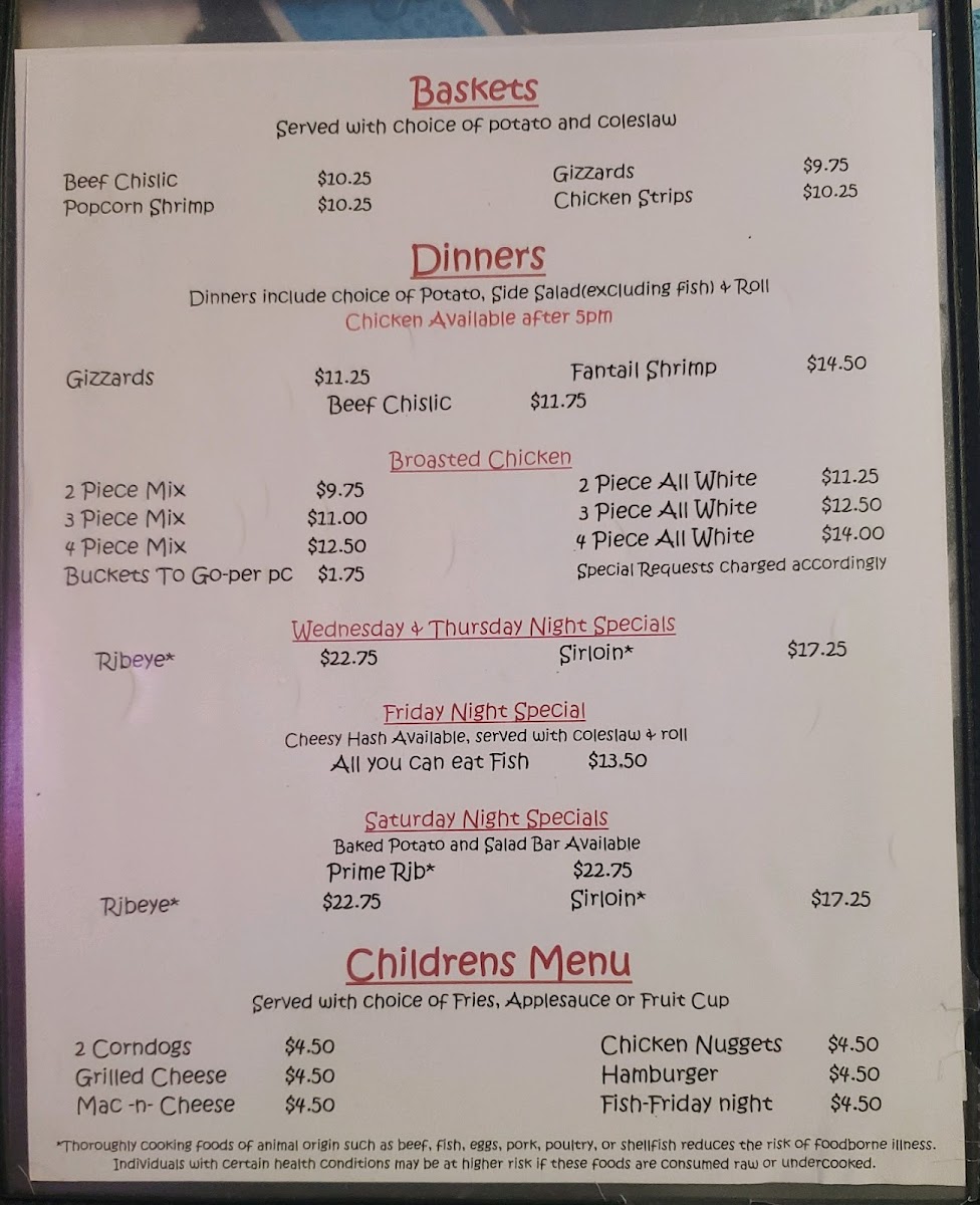 The menu features a range of satisfying sandwiches like a homemade pork tenderloin, grilled chicken, and a variety of burgers—all ideal for those looking to enjoy a familiar, comforting meal without fuss. For something a bit different, options like beef chislic or fantail shrimp provide a taste of local flavor and simple pleasures.
