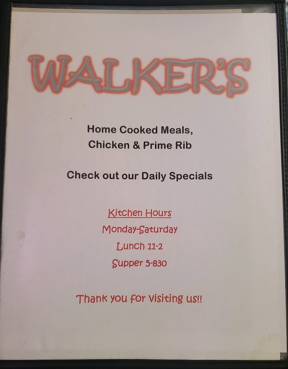 Walker's Menu